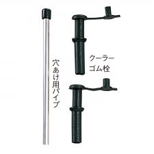 お手持ちのクーラーが熱溶断で穴あけが簡単にでき、エアポンプのホースが取り付けられ、